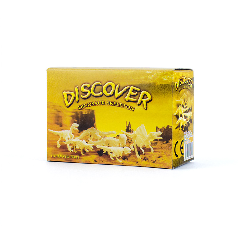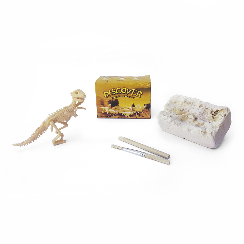 En este kit encontrarás un bloque de yeso, un punzón de madera y un pincel. Tendrás que cavar con cuidado para desenterrar las distintas partes de tu dinosaurio y necesitarás un poco de pegamento para unirlas. ¡Colecciona los XX modelos!